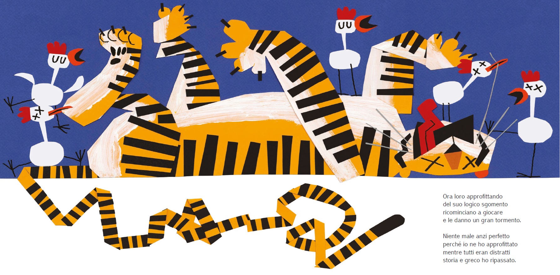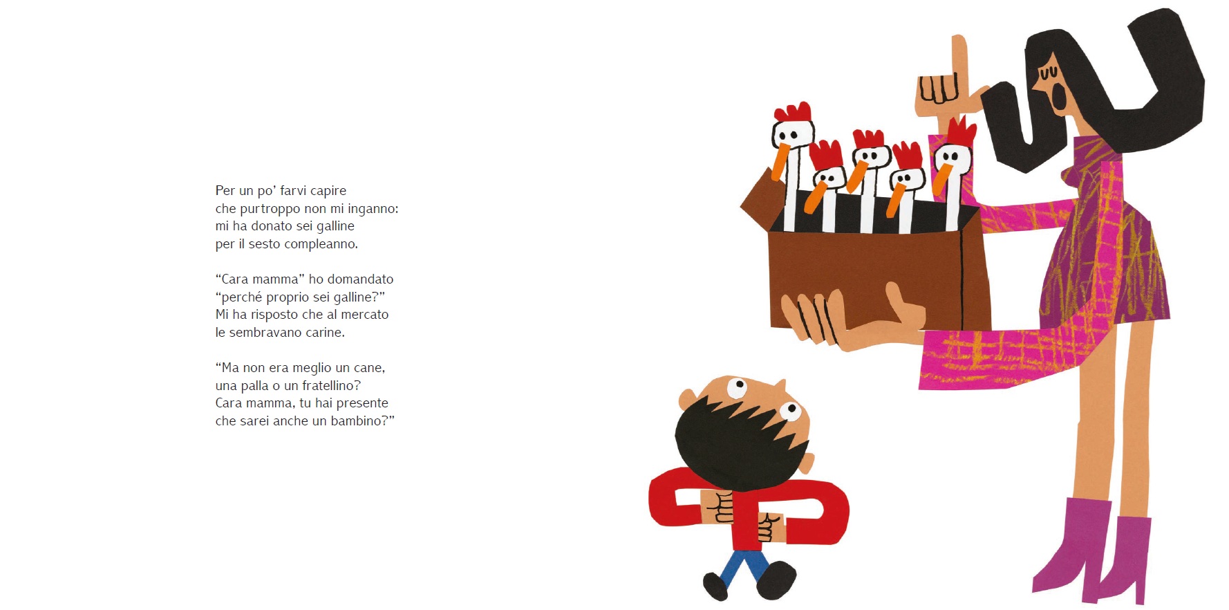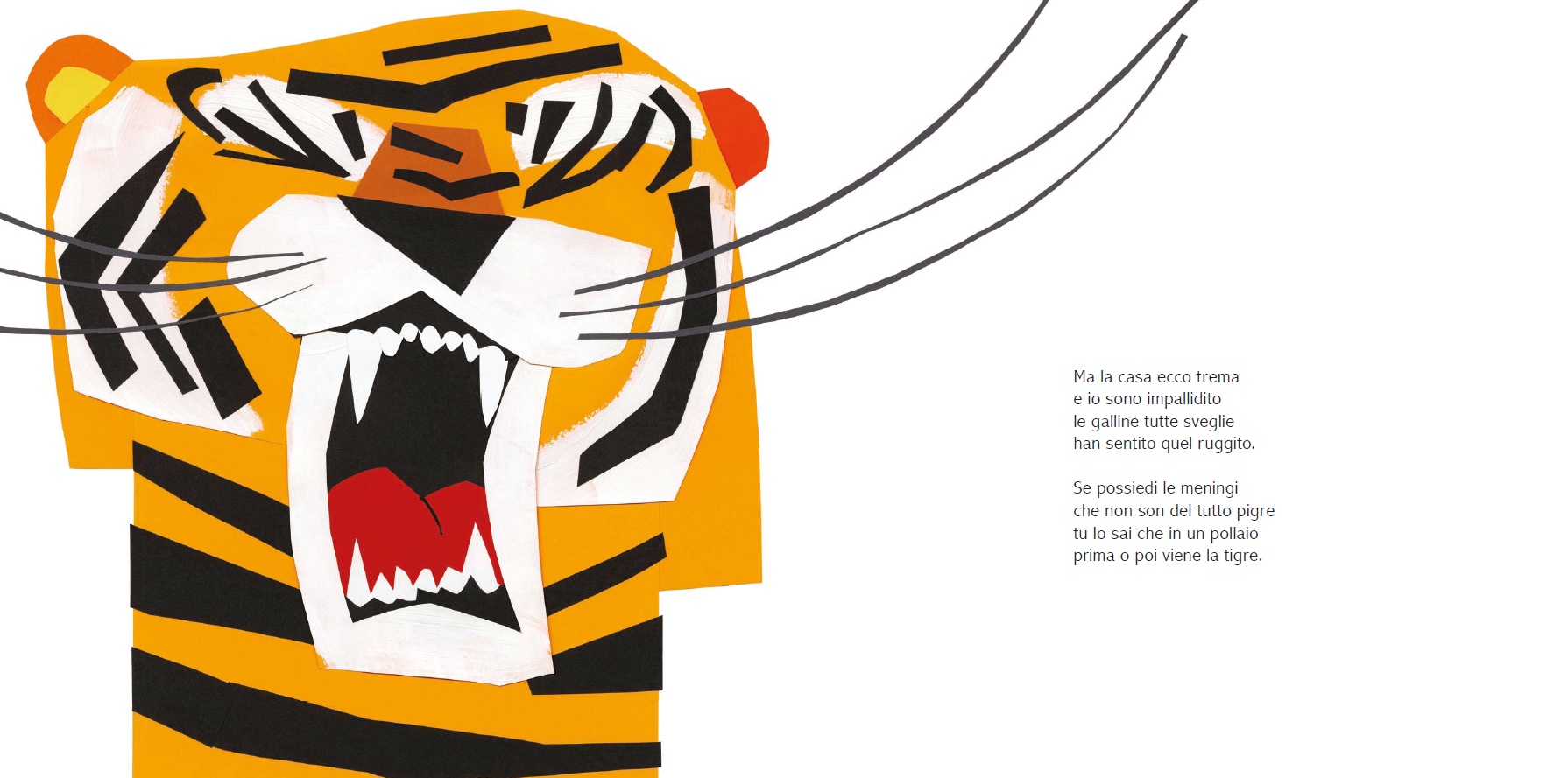 Da quel momento, però, la casa si riempie di piume e di guai: le galline giocano, cantano, si spaventano, combinano disastri… finché compare una tigre travestita da tappeto (e poi da maestra, e poi da criceto!).