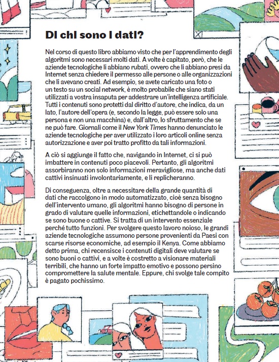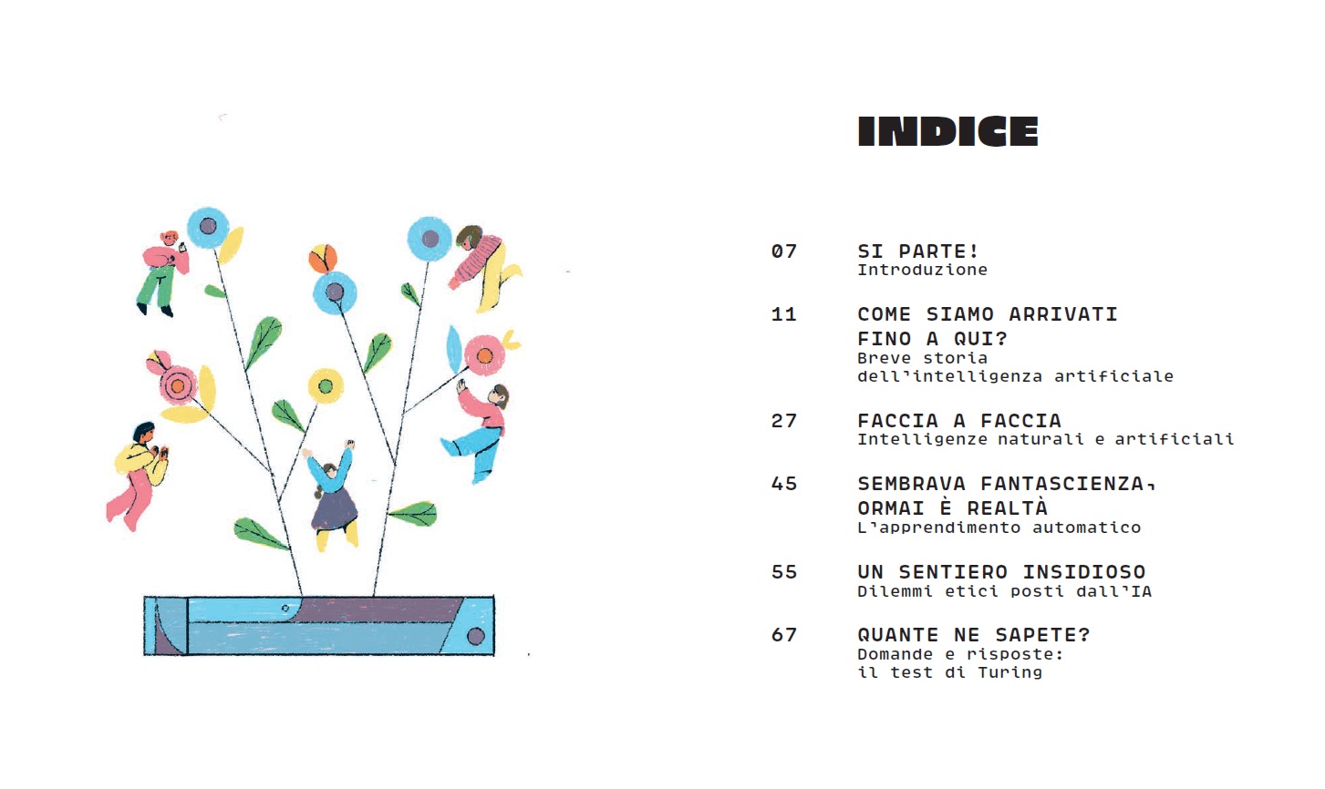 Ogni capitolo prende avvio da una domanda stimolante e invita a riflettere sul rapporto tra esseri umani e tecnologia, senza semplificazioni né allarmismi, per capire come funziona l’intelligenza artificiale e imparare a usarla con consapevolezza, spirito critico e responsabilità.